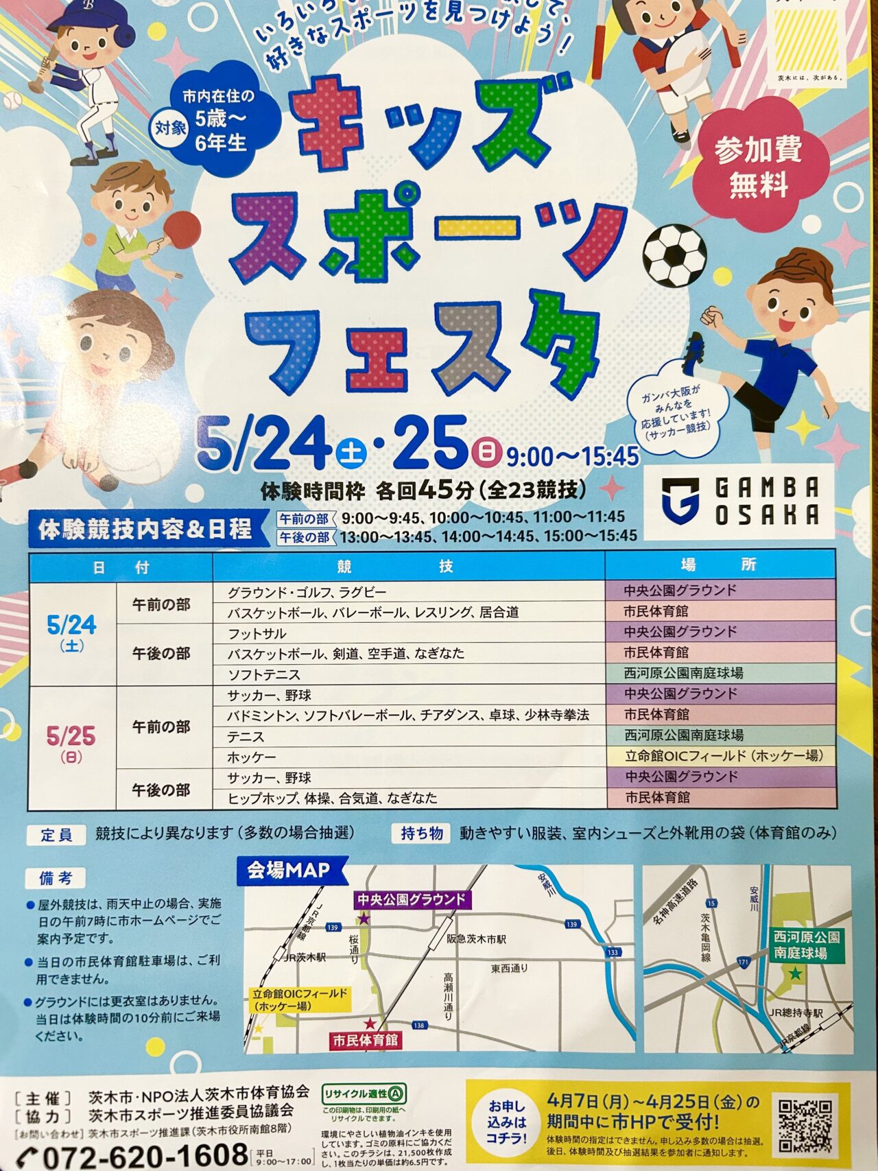 【茨木市】スポーツデビューをお考えのお子さんに「キッズスポーツフェスタ」5月24・25日開催!