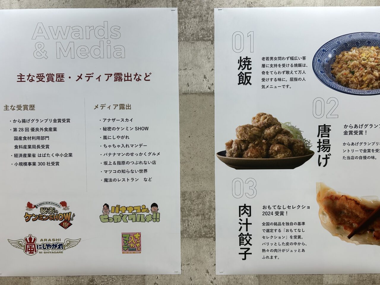ちゃんぽんのほかには、から揚げグランプリ金賞受賞歴がある唐揚げや、焼飯、肉汁餃子がラインナップ!