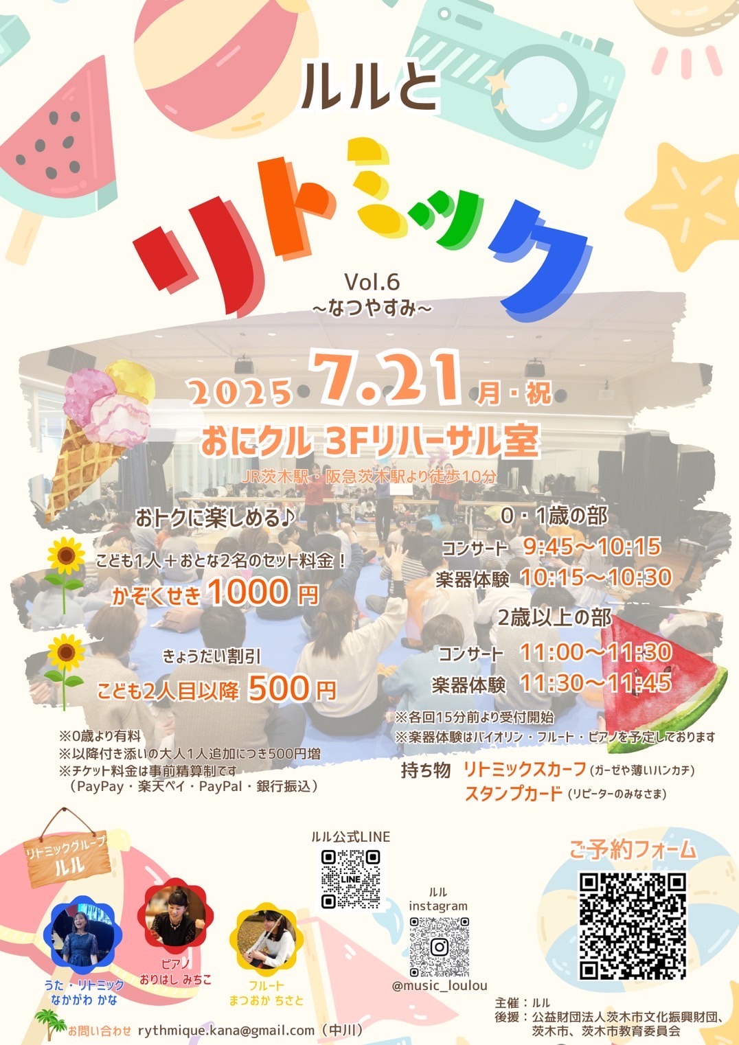 【茨木市】2か月のお子さんから楽しめるリトミックコンサート「ルルとリトミックVol.6〜なつやすみ〜」開催