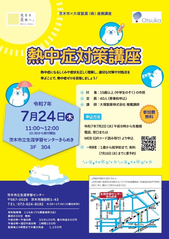 【茨木市】正しい熱中症の知識を身につけませんか?大塚製薬株式会社との連携講座開催!