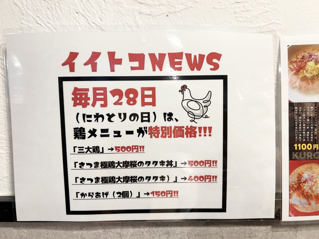 豊川にあるラーメン屋「イイトコノトリ」では、毎月お得なキャンペーンがあります。