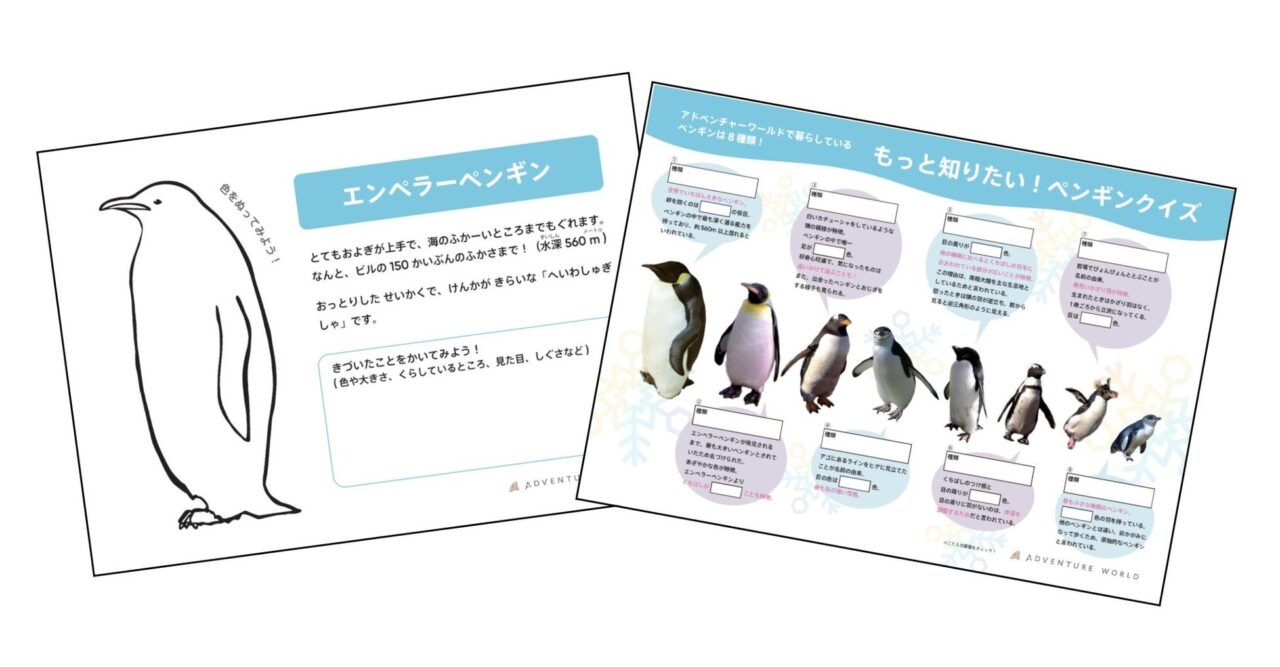 さらに、ペンギンの模様に注目して色や形の違いを観察しながら完成させる「ペンギンのぬりえずかん」や、生態をクイズ形式で学べる「ペンギン豆知識クイズシート」など、子どもから大人まで楽しめるコンテンツが充実しています。