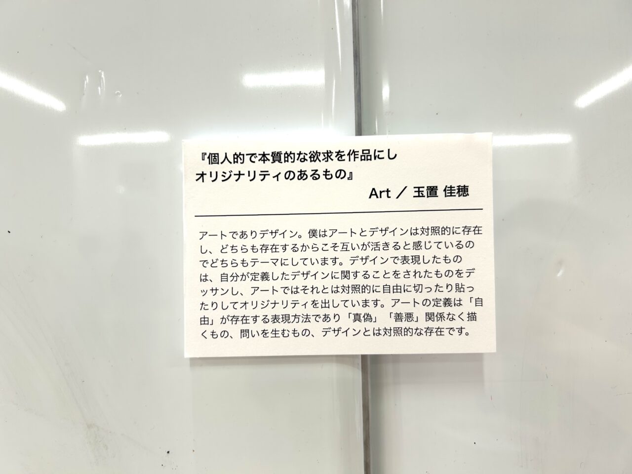 会場を回っていると3年生が話しかけてくれて、作品や創造コースについて色々と教えてくれました。
