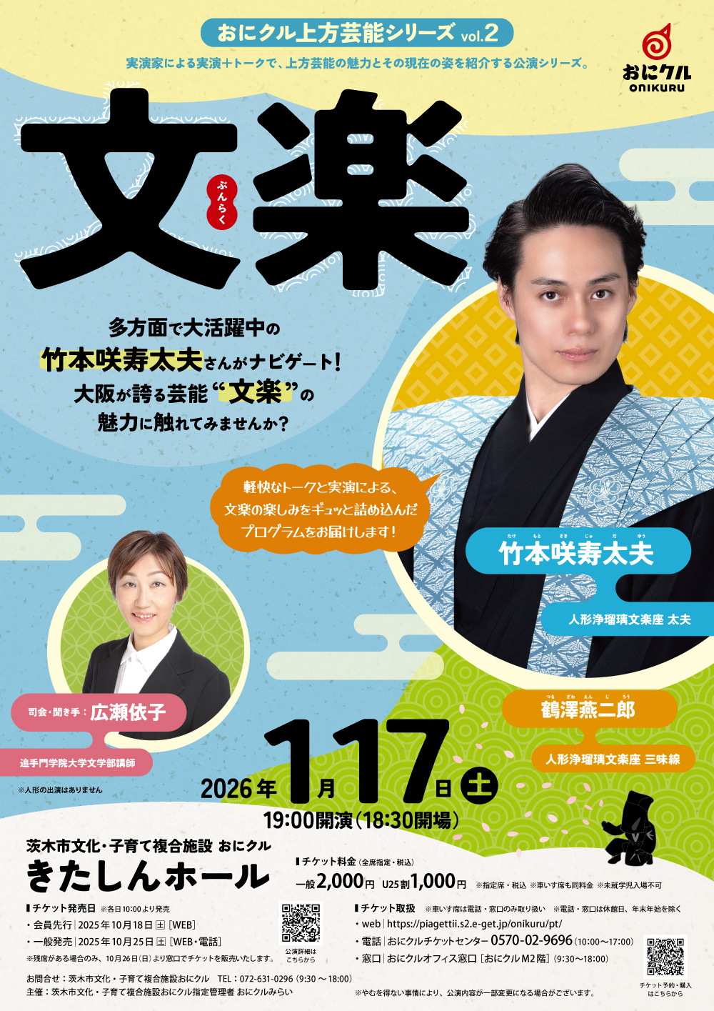 【茨木市】年始はおにクルで大阪発の芸能“文楽”(ぶんらく)に触れてみませんか?初心者でも楽しめる実演+トークイベント