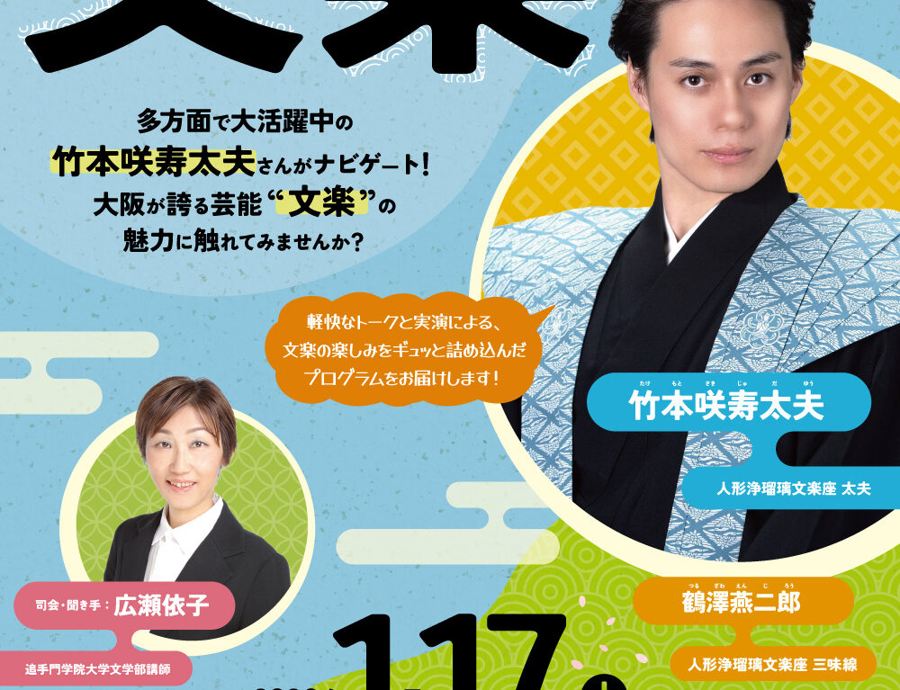 多方面で大活躍中の竹本咲寿太夫さんがナビゲート!実演+トークで芸能の魅力を紐解く!