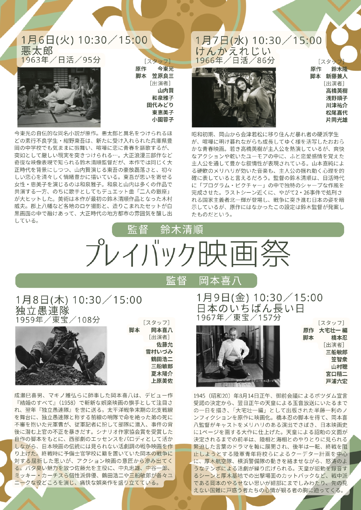 いばらきプレイバック映画祭~鈴木清順×岡本喜八~