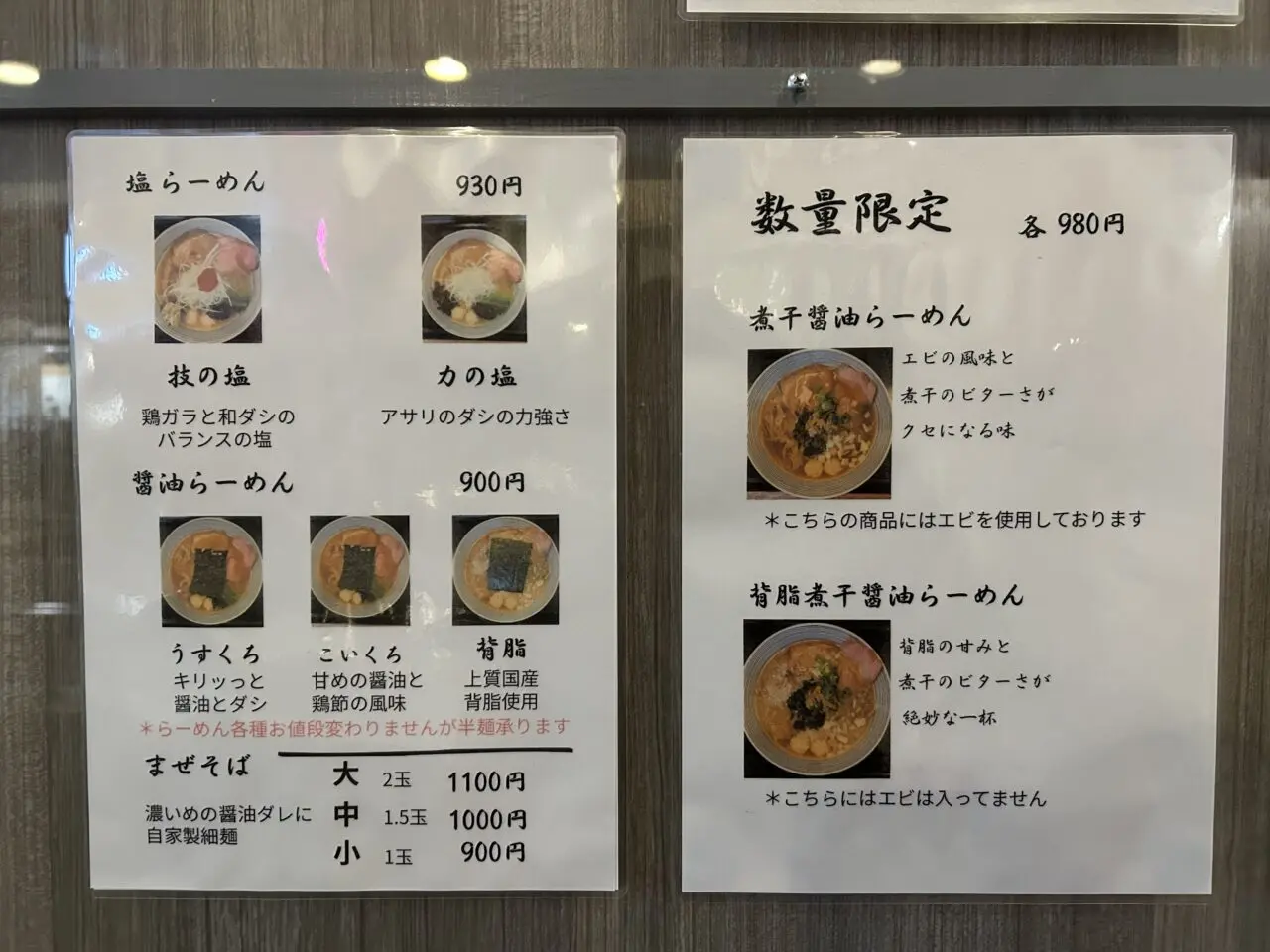 定番は「塩らーめん」「醤油らーめん」そして「まぜそば」。