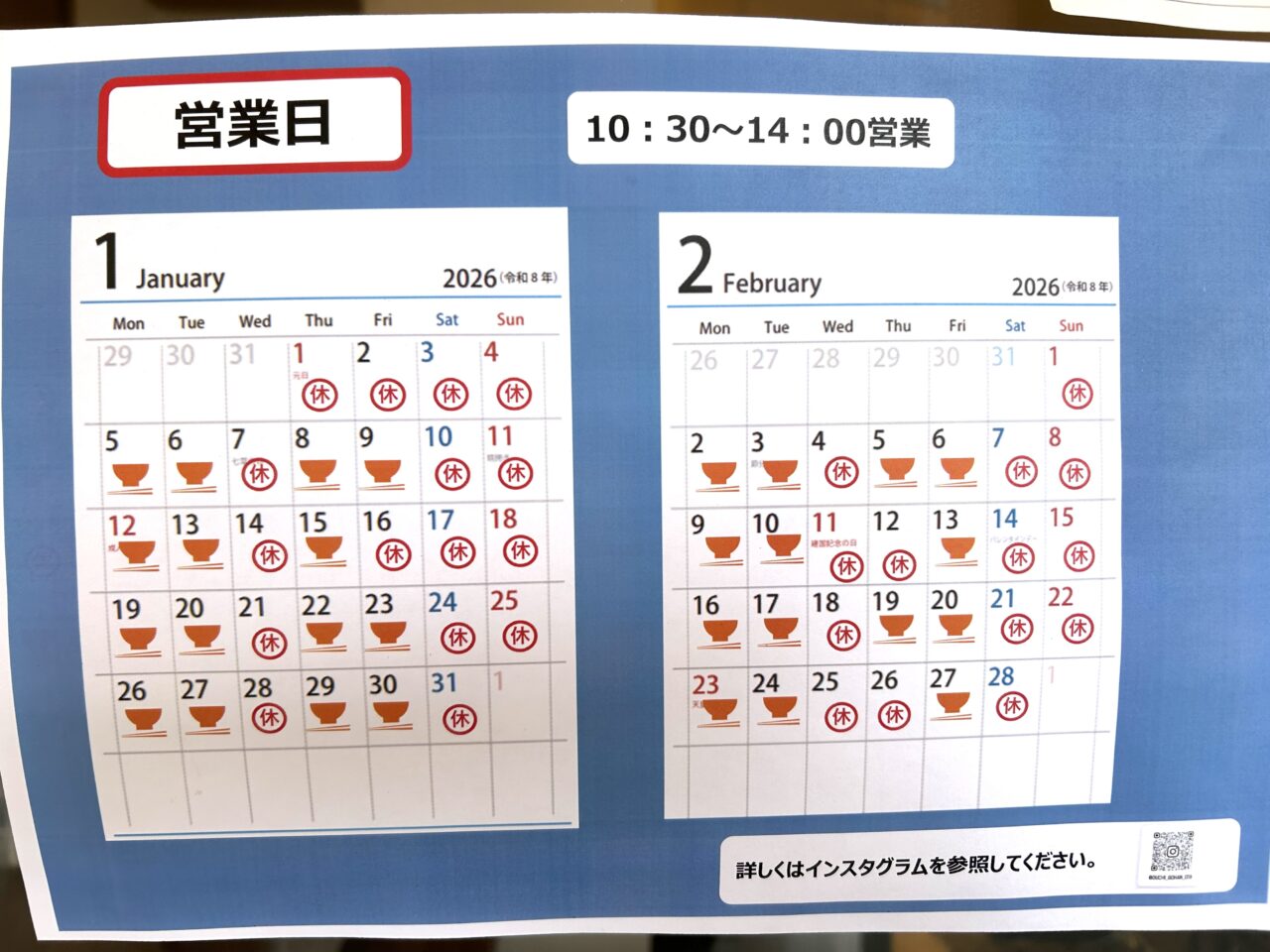 営業日は週4日。Instagramでご確認ください。