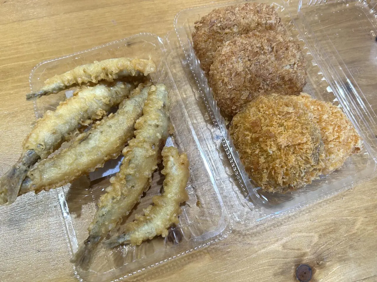 今回はコロッケやメンチカツのほか、季節限定の「わかさぎの天ぷら」を購入しました。