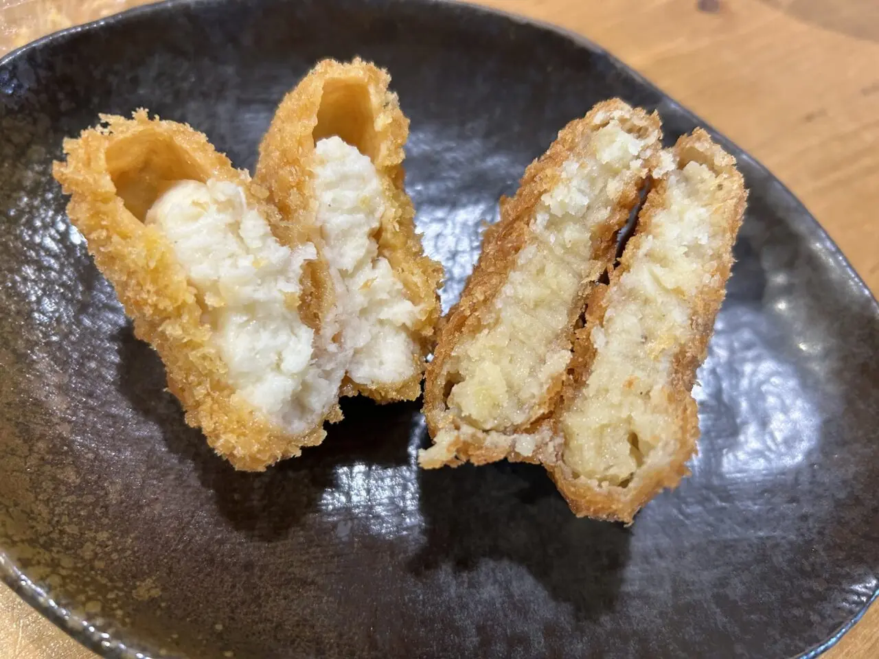 「ホタテクリームコロッケ」は、濃厚な海の味わいがギュッと詰まっています。サックサクの衣と、クリーミーな中身のバランスが秀逸です。