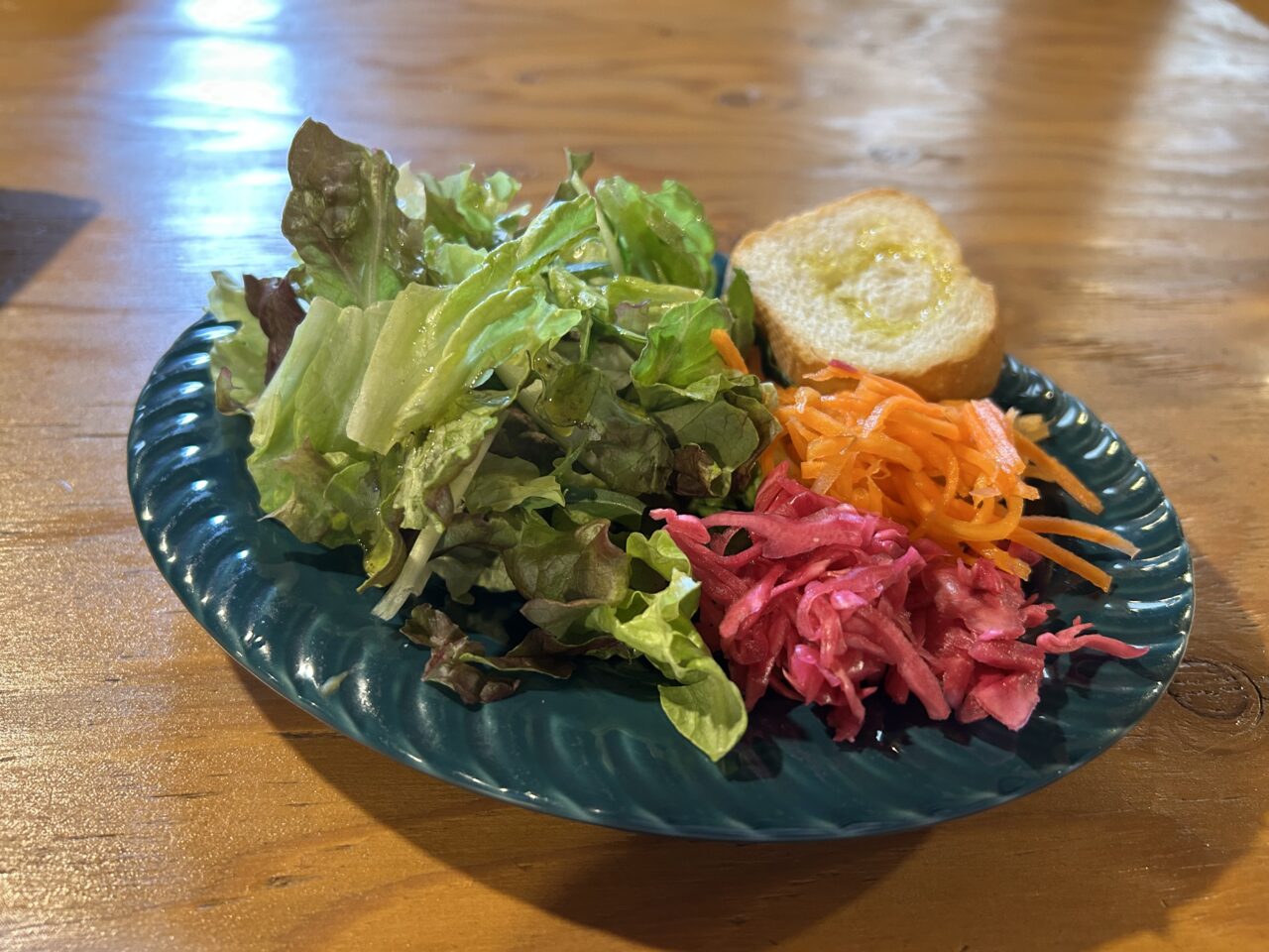 サラダは生野菜とバゲットの盛り合わせ。ボリューム満点でした。
