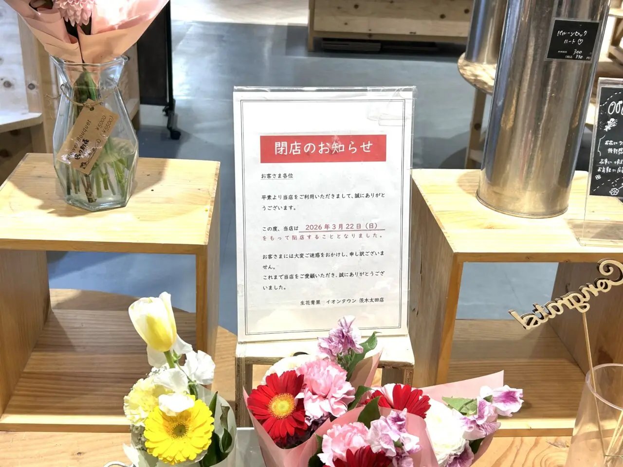 【茨木市】イオンタウン茨木太田のお花屋さん「生花青果」が3月22日に閉店しました