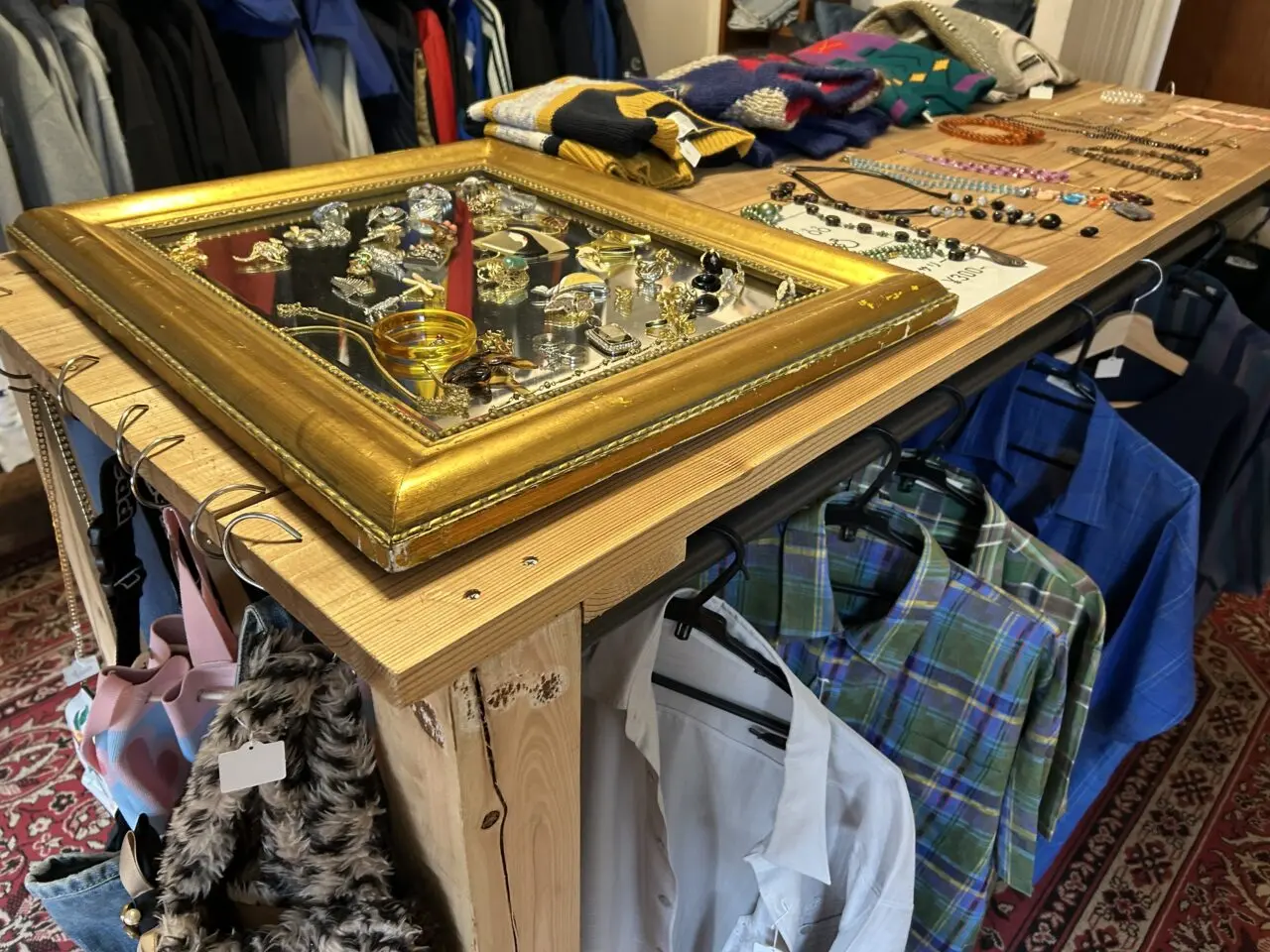 服・雑貨・靴・アクセサリーまでが綺麗にまとまって並んでいます。