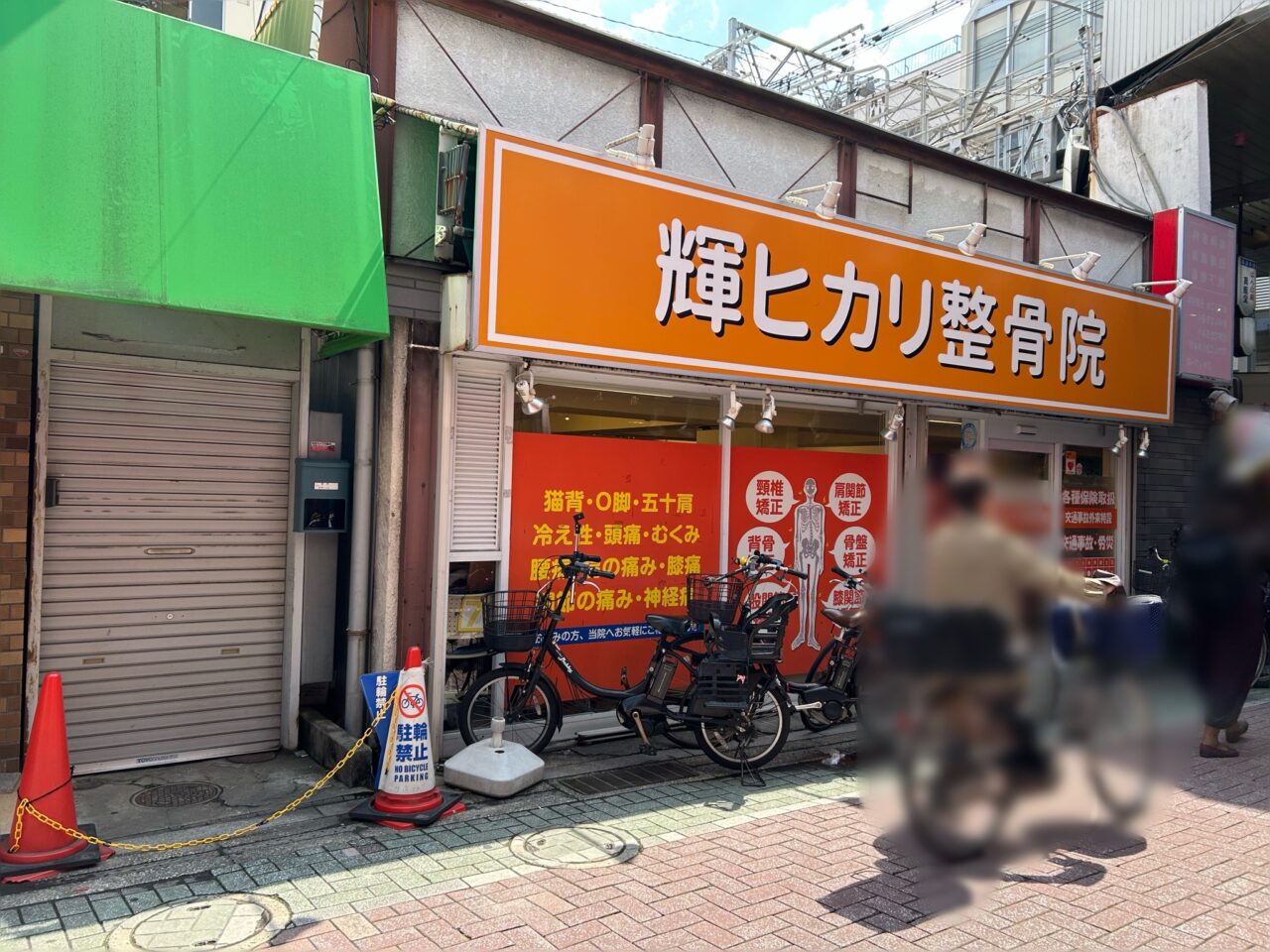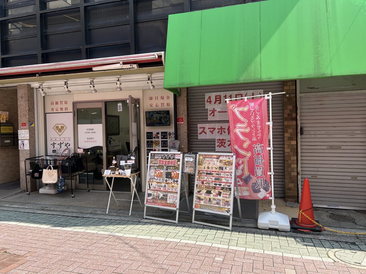 お店の場所は、商店街の「買取専門店すずや 阪急茨木店」と「輝ヒカリ整骨院」の間です。